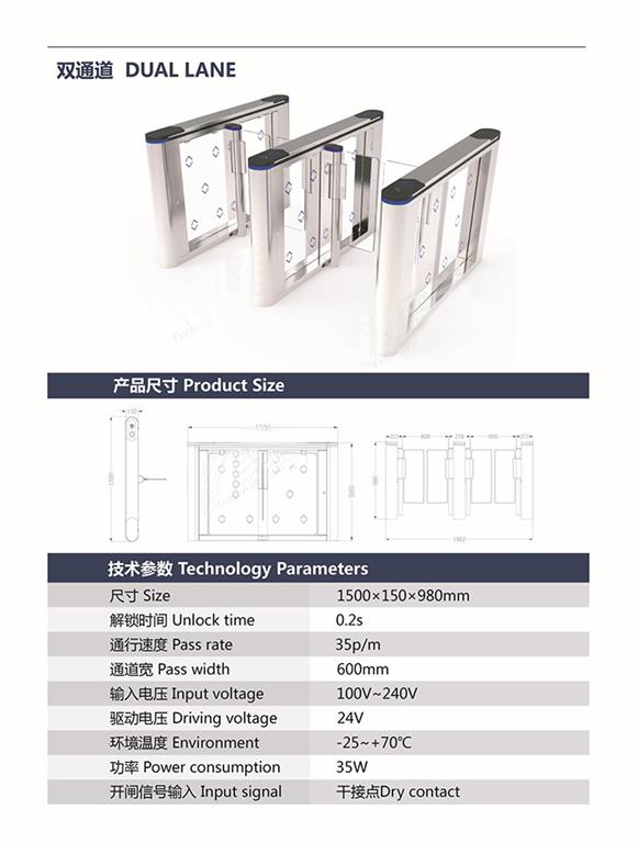 機(jī)場_速通門B302功能特點:進(jìn)口304不銹鋼;箱體激光切割加工;精磨工藝.